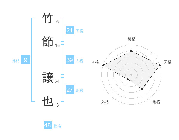 竹節 譲也さんを姓名の画数から五運を鑑定