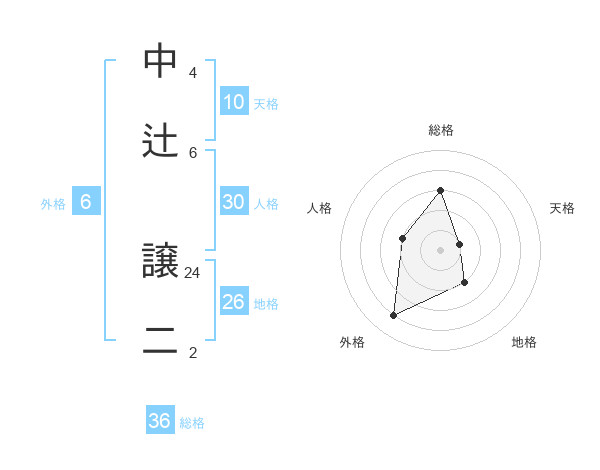 中辻 譲二さんの外格は6画の4点!