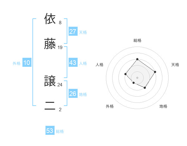 依藤 譲二さんの総格は53画の3点!