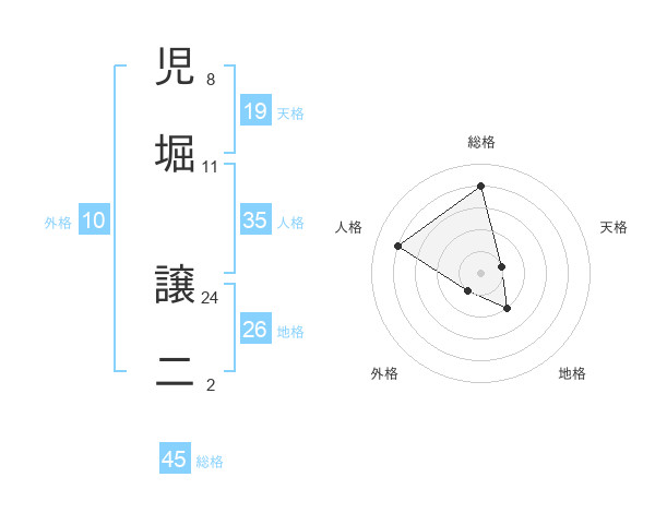 児堀 譲二さんの総格は45画の4点!