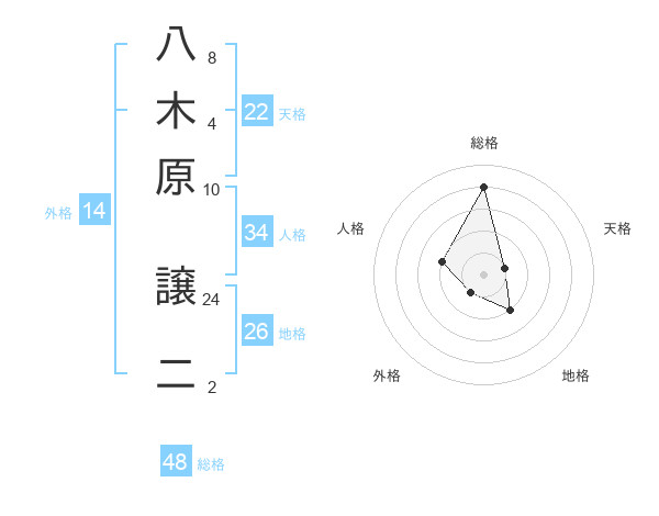 八木原 譲二さんを姓名の画数から五運を鑑定