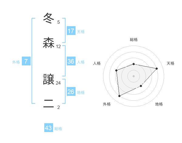 冬森 譲二さんを姓名の画数から五運を鑑定