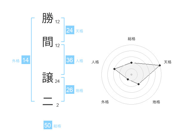 勝間 譲二さんの総格は50画の2点!