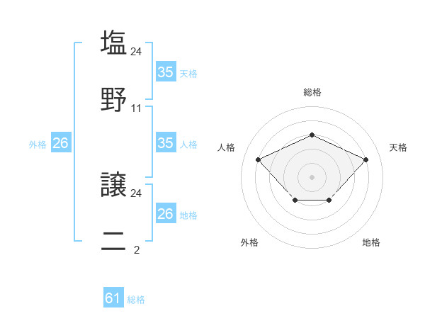 塩野 譲二さんの総格は61画の3点!