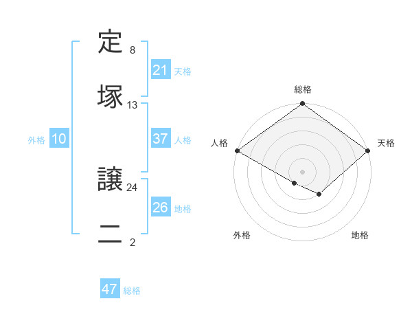 定塚 譲二さんを姓名の画数から五運を鑑定
