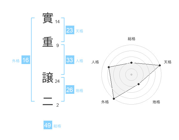實重 譲二さんの総格は49画の2点!