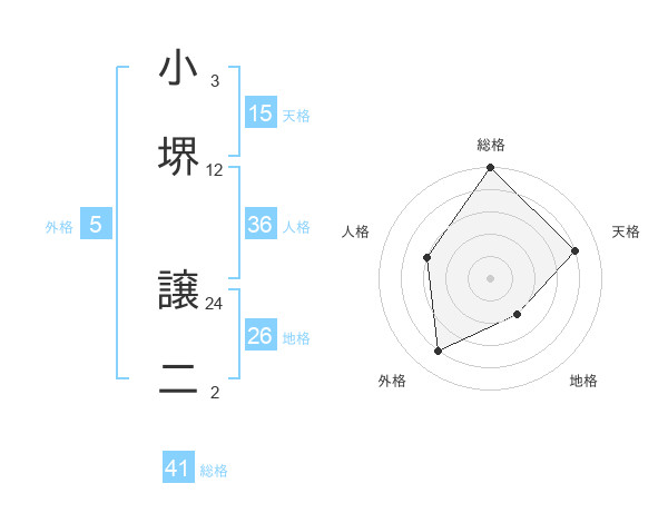 小堺 譲二さんを姓名の画数から五運を鑑定