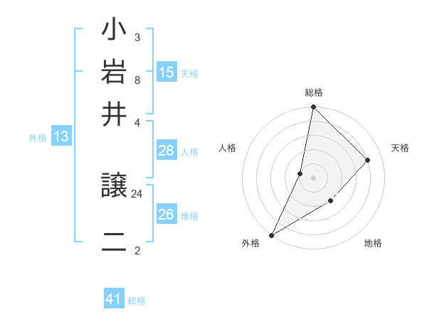 小岩井 譲二さんを姓名の画数から五運を鑑定