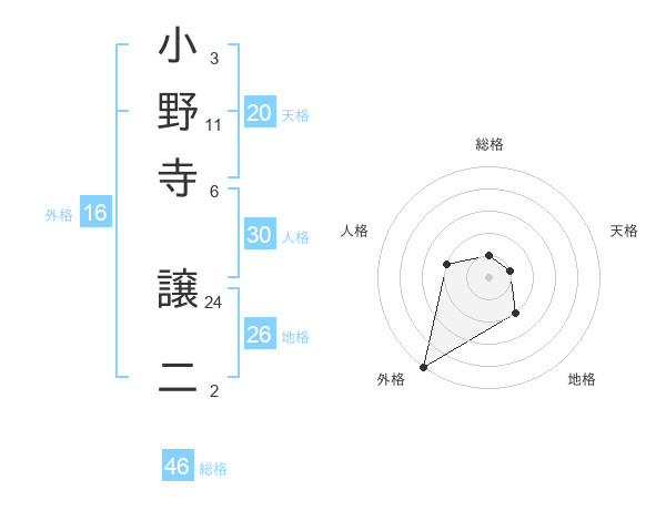 小野寺 譲二さんを姓名の画数から五運を鑑定