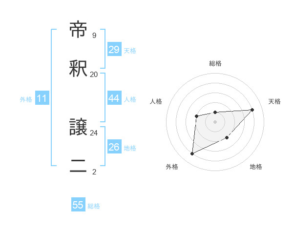 帝釈 譲二さんを姓名の画数から五運を鑑定