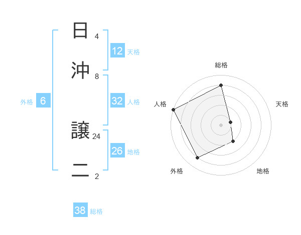 日沖 譲二さんを姓名の画数から五運を鑑定