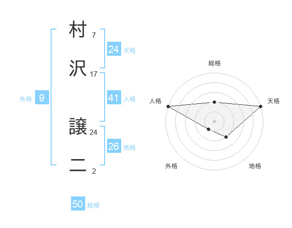 村沢 譲二さんの総格は50画の2点!
