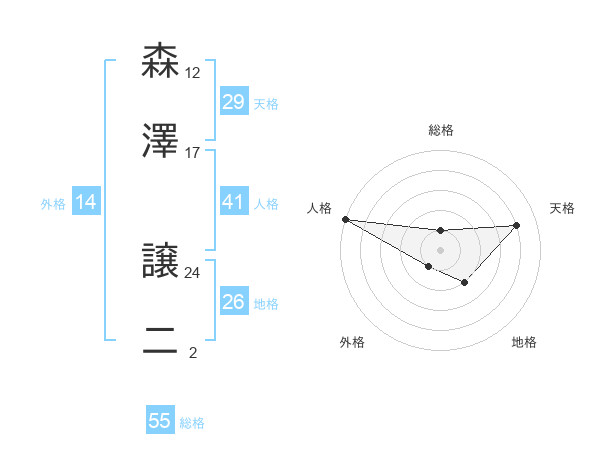 森澤 譲二さんの総格は55画の1点!