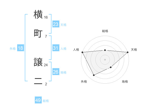 家系が持つ宿命的な運勢を表します。祖先から受け継いだ苗字ですので自分の力が及びません。家柄を象徴します。