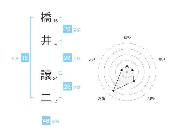 橋井 譲二さんの地格は26画の2点!