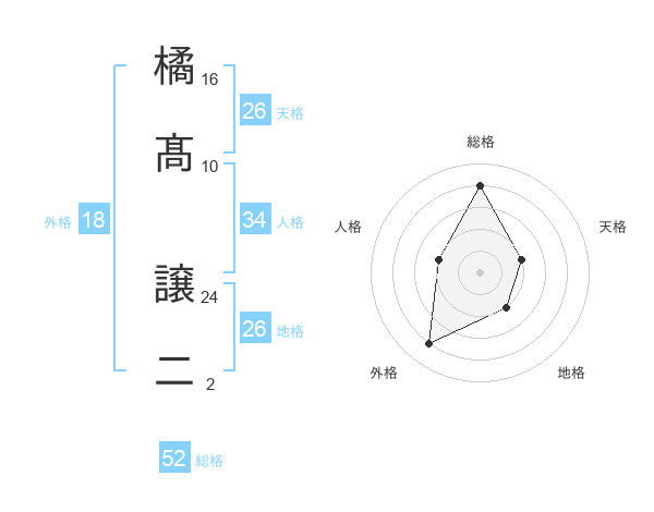 橘髙 譲二さんの総格は52画の4点!