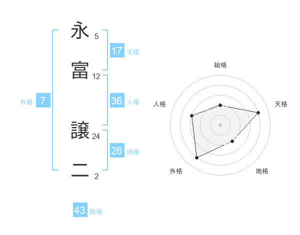 永富 譲二さんの総格は43画の2点!