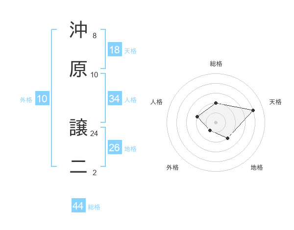 沖原 譲二さんを姓名の画数から五運を鑑定