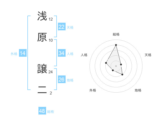 浅原 譲二さんの総格は48画の4点!