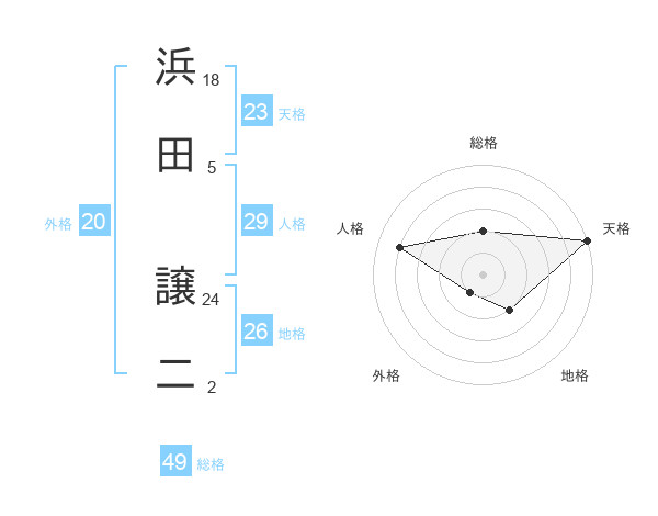 浜田 譲二さんを姓名の画数から五運を鑑定
