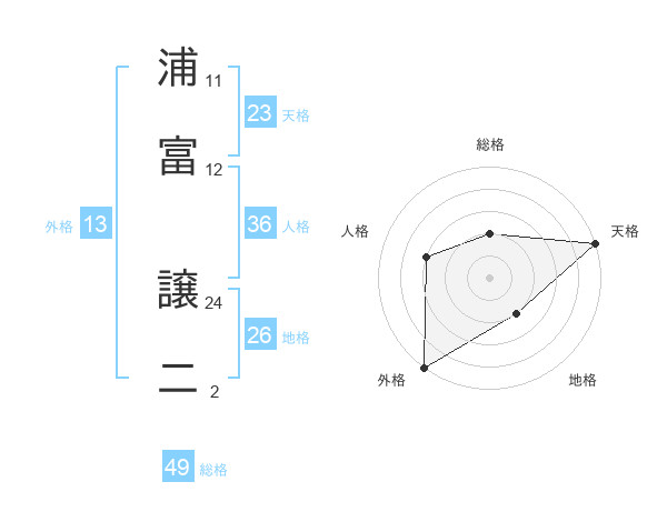 浦富 譲二さんの総格は49画の2点!