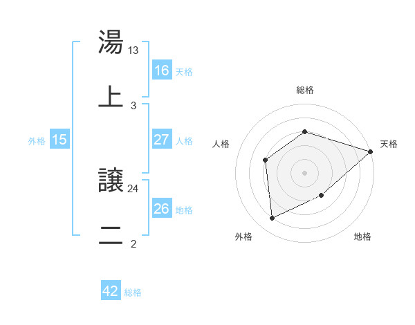 湯上 譲二さんの総格は42画の3点!