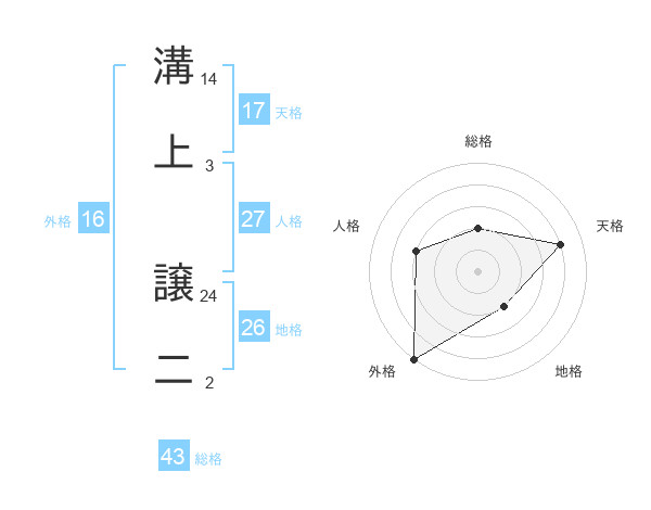 溝上 譲二さんを姓名の画数から五運を鑑定