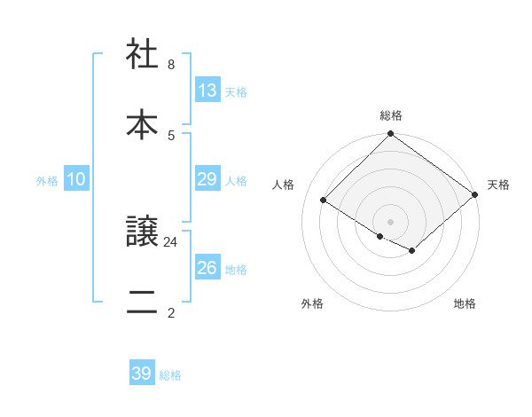 社本 譲二さんの総格は39画の5点!