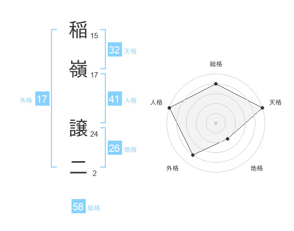稲嶺 譲二さんの外格は17画の4点!