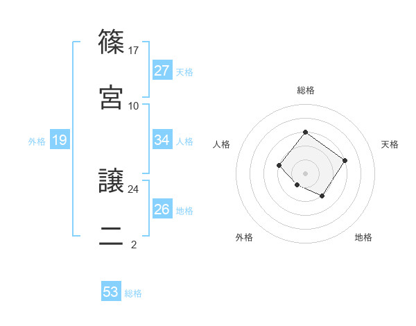 篠宮 譲二さんの総格は53画の3点!