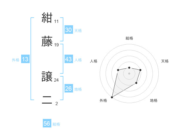 紺藤 譲二さんの外格は13画の5点!