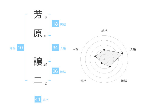 芳原 譲二さんを姓名の画数から五運を鑑定