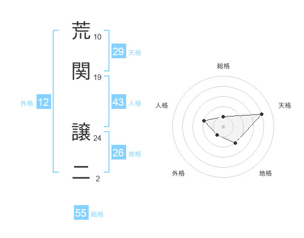 荒関 譲二さんを姓名の画数から五運を鑑定