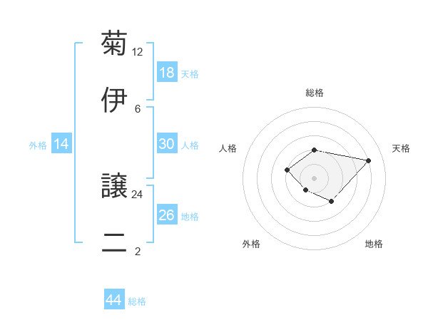 菊伊 譲二さんを姓名の画数から五運を鑑定
