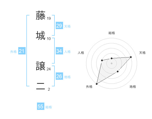 藤城 譲二さんを姓名の画数から五運を鑑定