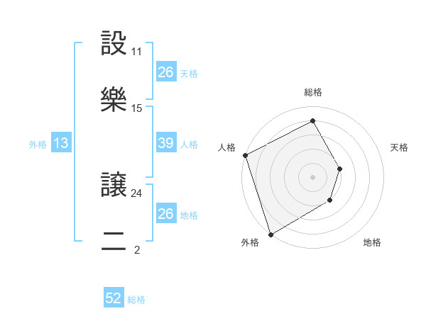 設樂 譲二さんの総格は52画の4点!