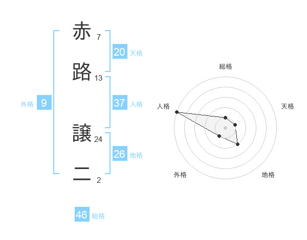 赤路 譲二さんの総格は46画の1点!