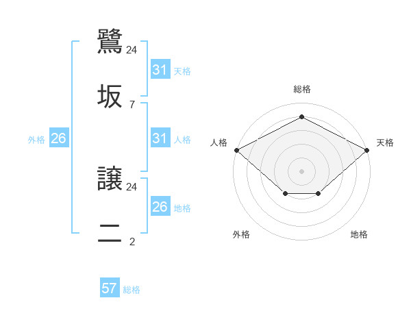 鷺坂 譲二さんの総格は57画の4点!