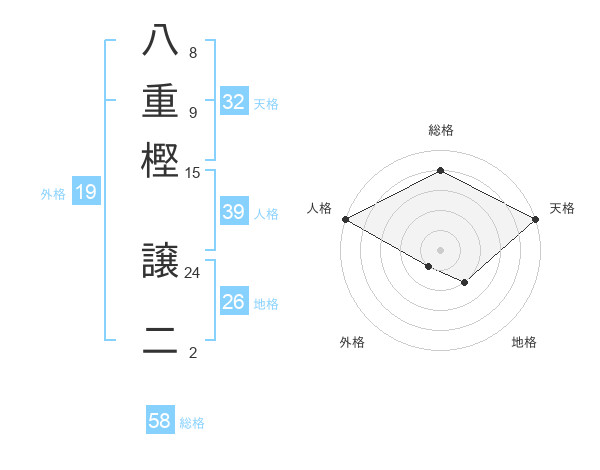 八重樫 譲二さんの総格は58画の4点!