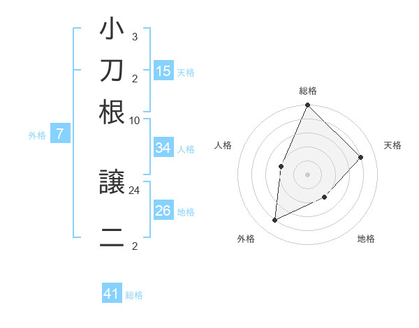 小刀根 譲二さんの総格は41画の5点!
