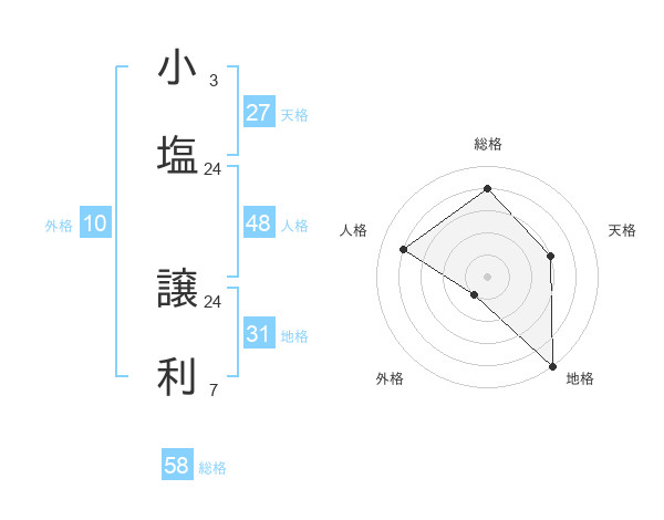 小塩 譲利さんの総格は58画の4点!
