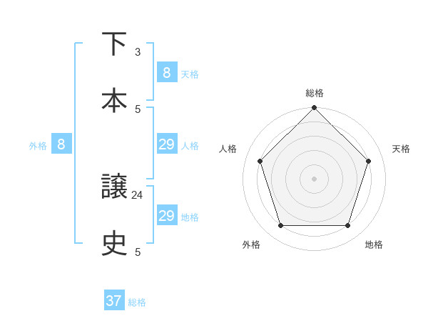 下本 譲史さんの総格は37画の5点!