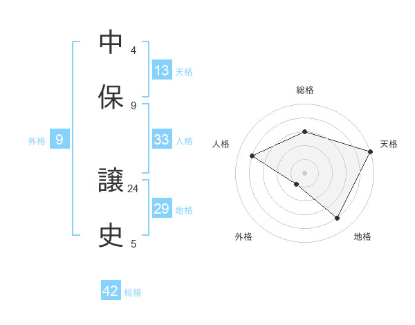 中保 譲史さんの天格は13画の5点!