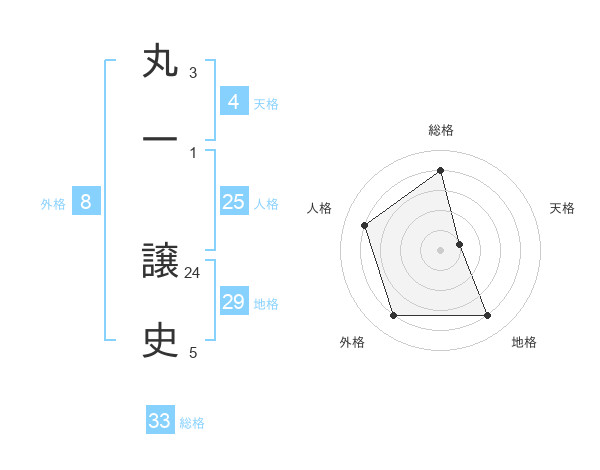 丸一 譲史さんの総格は33画の4点!