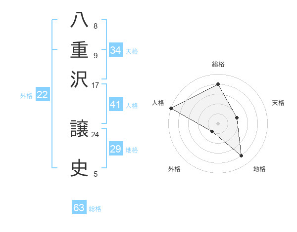 八重沢 譲史さんの総格は63画の4点!