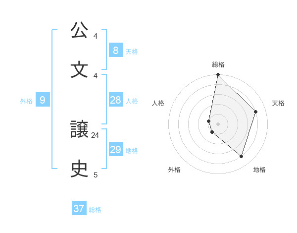 公文 譲史さんの総格は37画の5点!