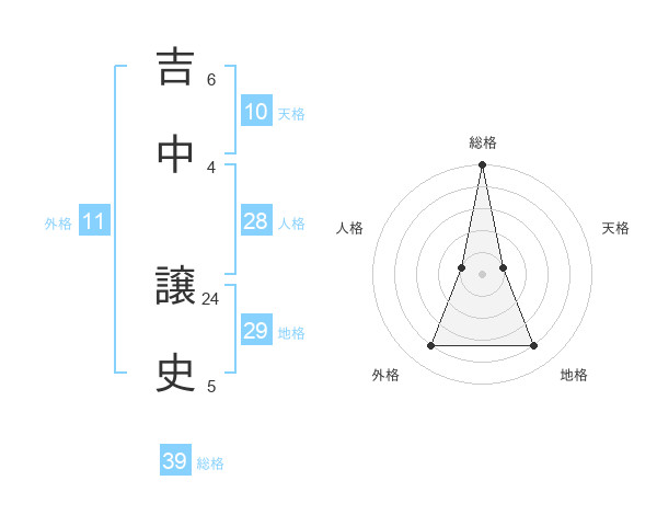 吉中 譲史さんを姓名の画数から五運を鑑定