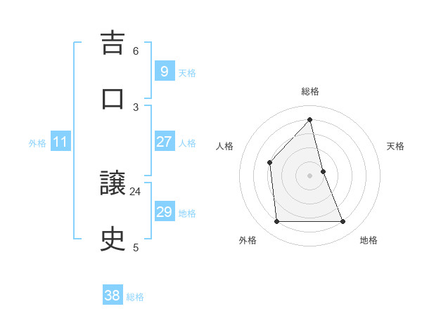 吉口 譲史さんの総格は38画の4点!