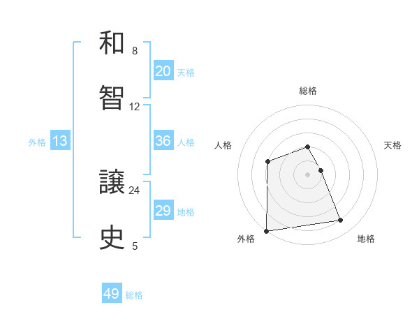 和智 譲史さんの外格は13画の5点!