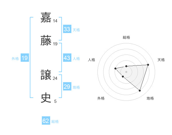嘉藤 譲史さんの総格は62画の1点!